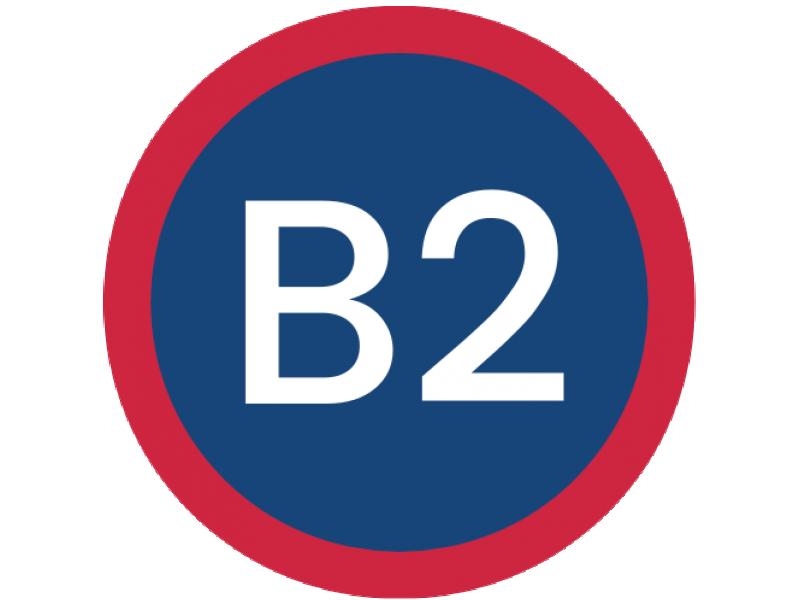 A B2 level suggests fluency and skills in English. It implies the ability to write about general concepts and be able to talk about any theme or topic.